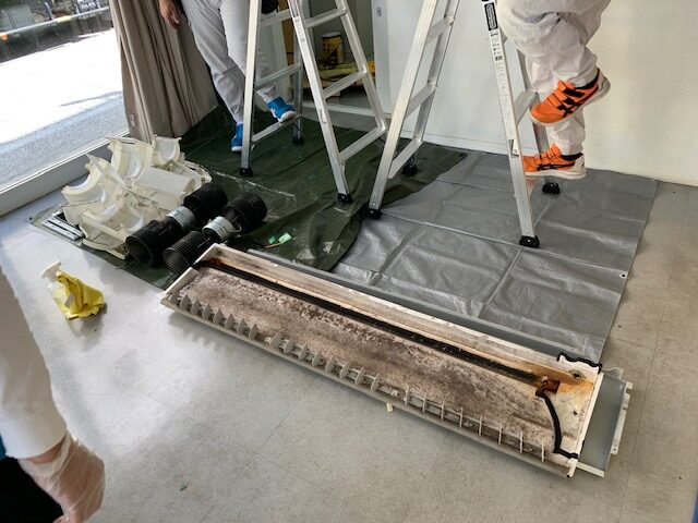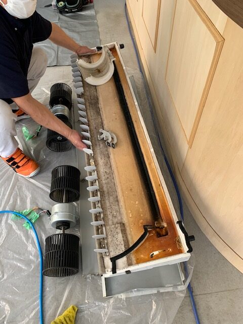 カバー、ルーバー、シロッコファン、フィルター等とことん外していきます。