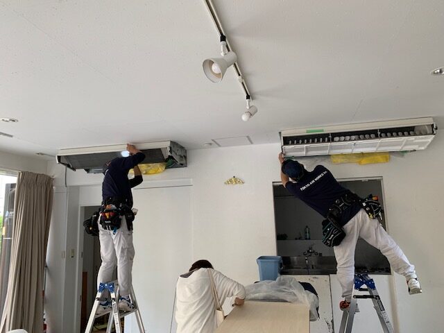 今回は三菱製の天吊りエアコン2台です。