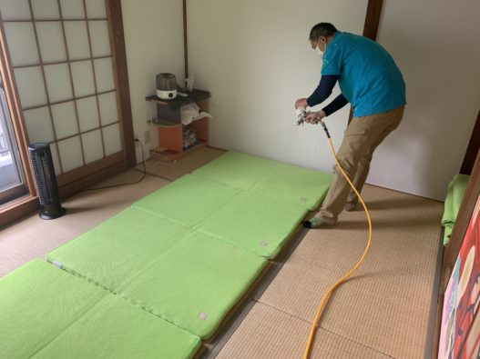 コーティング前に天然のオーガニック洗剤で拭き掃除しています。